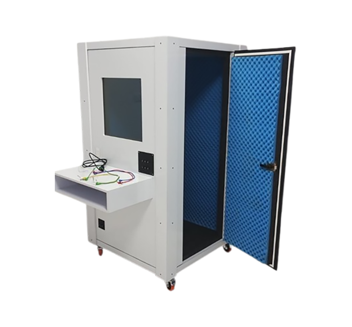 La cabina sonoamortiguada proporciona un ambiente aislado garantizando la medición en condiciones óptimas del umbral de audición del paciente.